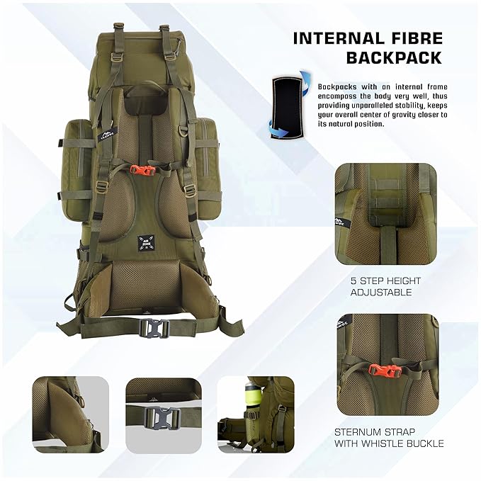 • Internal Fiber Frame: Designed for enhanced support, this backpack features a durable fiber frame that helps distribute weight evenly, making it ideal for carrying heavy loads while allowing flexibility to adjust to your needs.